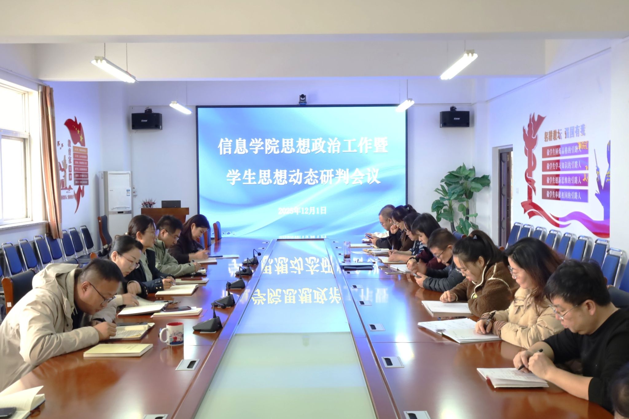 高萍指出,本次会议研判深入、交流务实,对准确把握员工思想动态、筑牢公司育人阵地具有重要意义。她强调,全体思政工作者要胸怀“国之大者”,将思想引领贯穿全过程;要贴近员工实际,精准回应成长需求;要强化协同联动,凝聚“大思政”育人合力。她希望全院师生以此次会议为新起点,夯实基础、担当实干,共同推动思想政治工作提质增效,为培养信息领域担当大任的时代新人作出扎实贡献。