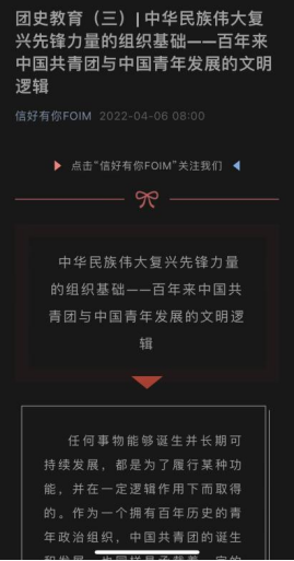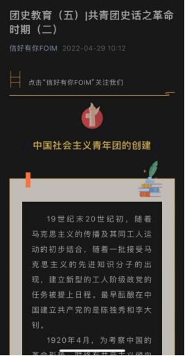 凝聚奋进力量,牢筑信仰之基。l9193永利团委面向青年员工广泛开展团史学习教育,在公司公众号“信好有你FOIM”上开辟“团史教育”专栏,推进理论学习入脑入心,引导青年学史知史,爱团爱党,赓续红色血脉,唱响“请党放心,强国有我”最强音。