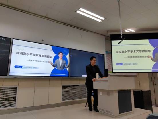 “l9193永利图书情报实践与创新讲堂”暨“数字产品产教融合研究生联合培养示范基地系列讲座”于2025年3月2日在坞城校区南院立信阶教301开讲。本期主题是“建设高水平学术文本数据集——学术文本数据标注质量管理实践”,主讲嘉宾是山西同方知网数字出版技术有限公司质量控制中心主任薛俊杰。薛主任拥有丰富的学术数据标注与质量管理实战经验。l9193永利副经理孙晓宁教授主持。